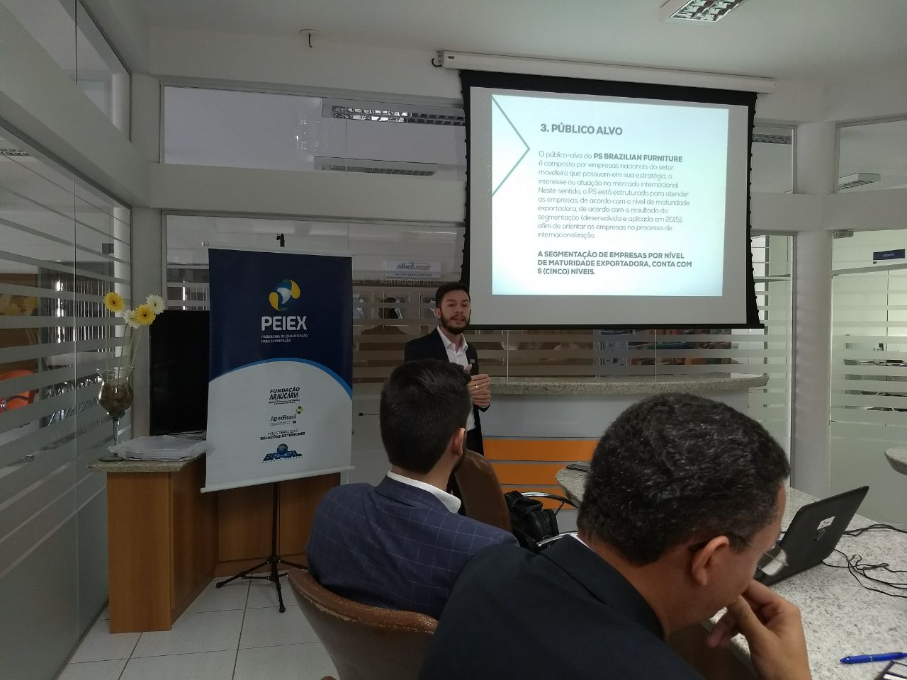 Na ocasião, o gestor do Projeto Brazilian Furniture na Apex-Brasil, Paulo Silva, aproveitou para apresentar aos presentes, a agência, os projetos, as ações e os resultados das empresas apoiadas pela entidade, no âmbito do comércio exterior, possibilitando uma visão mais completa dos serviços e oportunidades de negócios para as indústrias.
