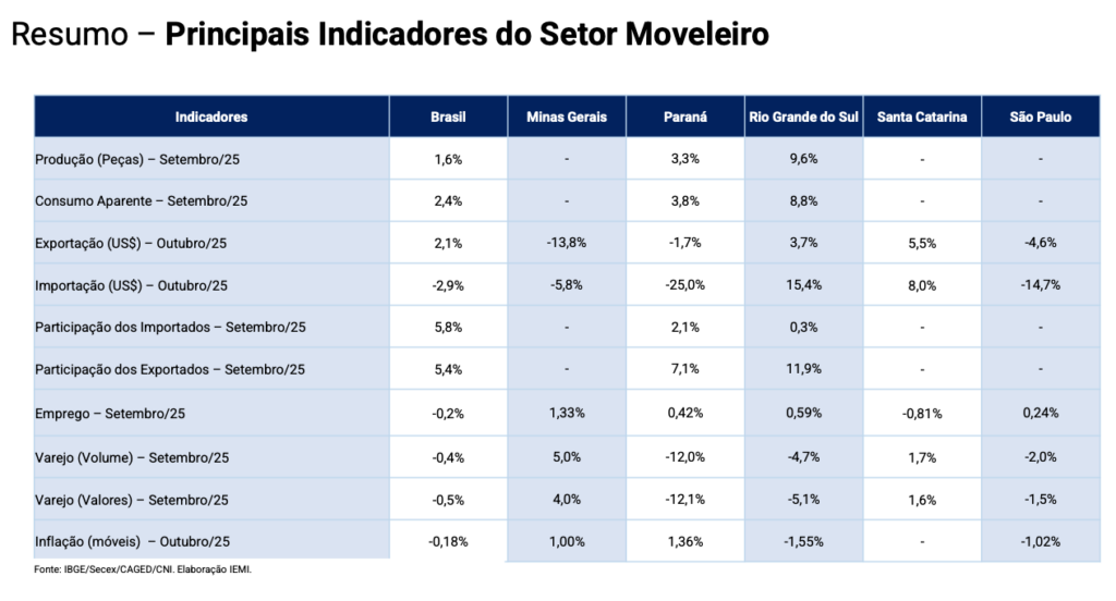Setembro e outubro trouxeram mudanças importantes no ritmo da produção, no comportamento de consumo doméstico e nas trocas internacionais. Elementos que ajudam a desenhar o ambiente no qual a indústria moveleira ingressou no último bimestre do ano.